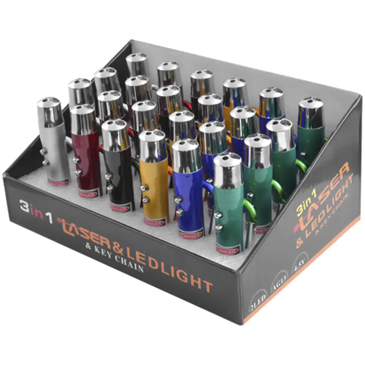 Лазер-брелок 9617/117-3-LED із трьома режимами роботи: LED, UV та лазер. Металевий корпус, карабін, живлення від 3 батарейок AG13 (у комплекті).