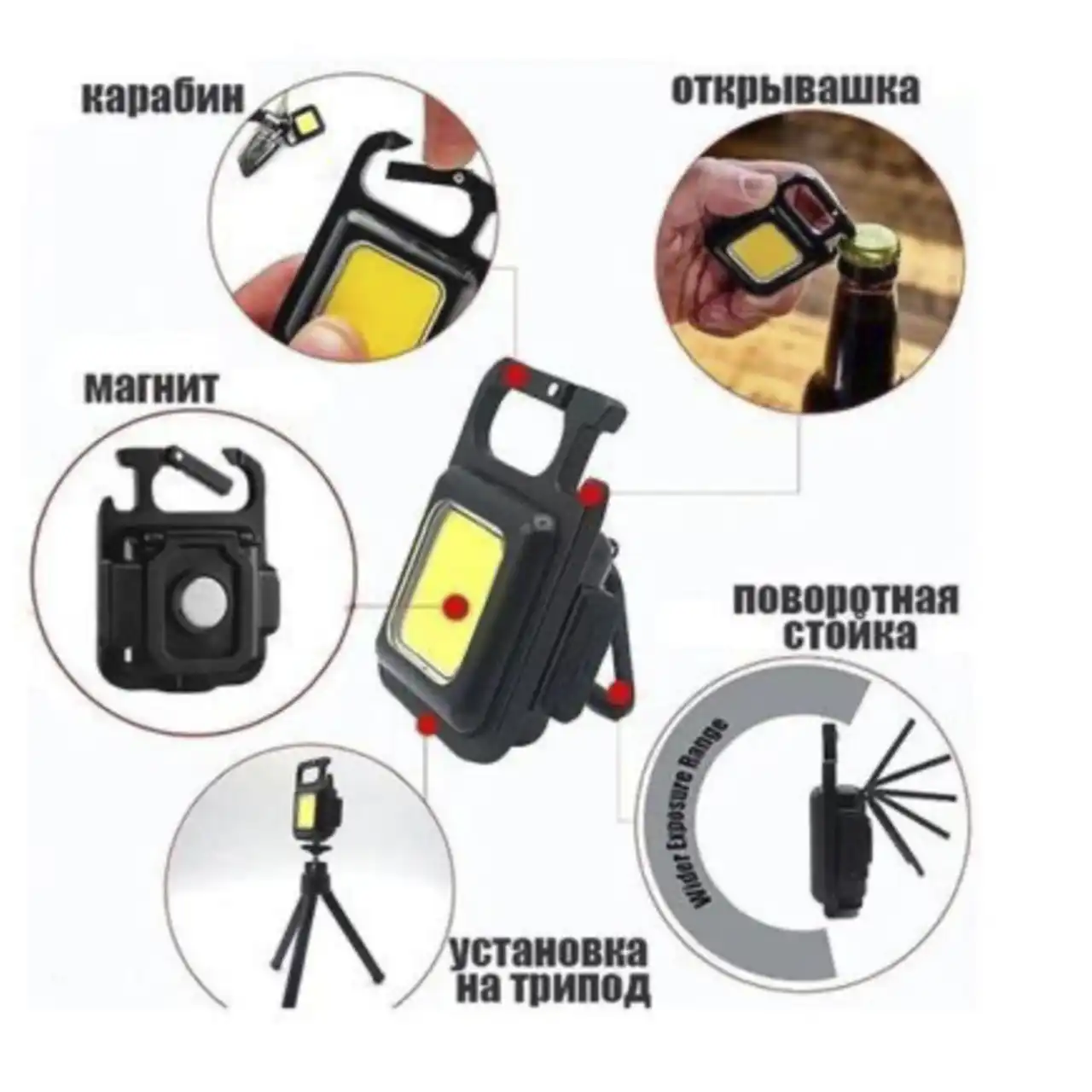 Завдяки магнітній основі, карабіну та відкривачці для пляшок, цей ліхтар стане універсальним аксесуаром у будь-якій ситуації — від туризму до побуту.