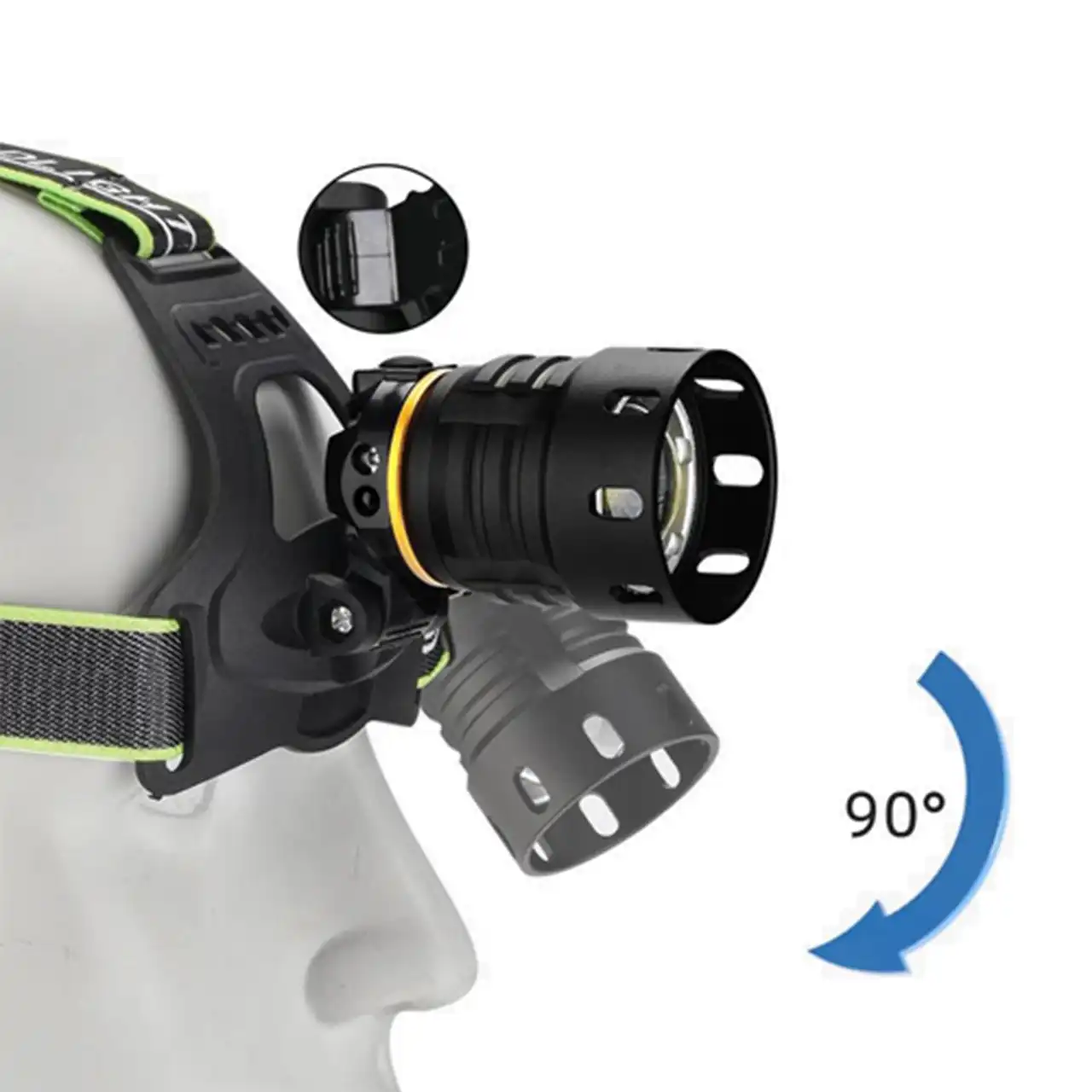 Оснащений сучасним світлодіодом HP90, який забезпечує високу яскравість і дальність світлового променя. Зручне кріплення на голову дозволяє залишати руки вільними, а регульований кут нахилу допомагає точно направити світло в потрібному напрямку.