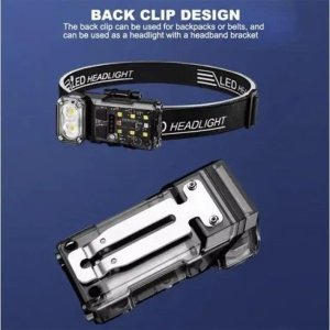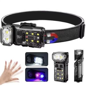 Налобний ліхтар X52-2LED+6SMD з білим та RGB-світлом (червоний, зелений, синій), сенсором руху та зарядкою Type-C. Оснащений двома LED-діодами для спрямованого світла та шістьма SMD-діодами для кольорового освітлення. Працює від Li-Ion акумулятора.