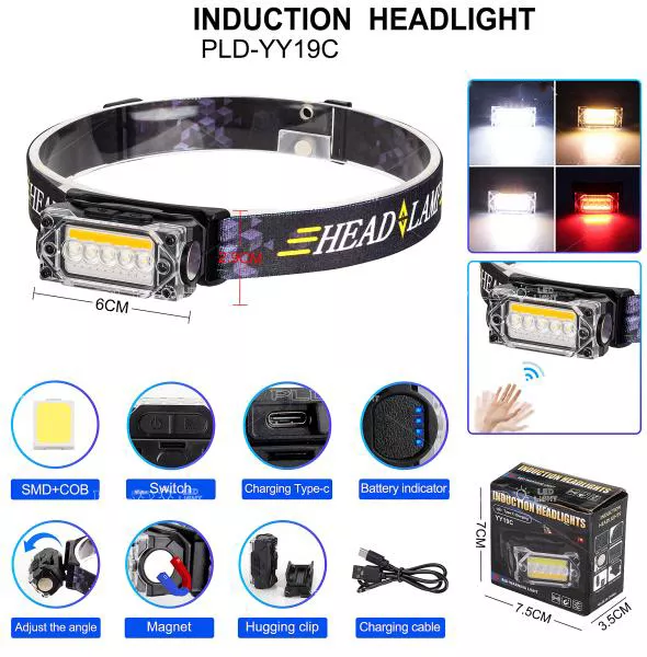 Ліхтар налобний YY-19С-5SMD+COB(white+yellow+red) – потужний та зручний аксесуар для освітлення вашого простору під час велосипедних поїздок, туристичних відпочинків чи будь-яких інших активностей.