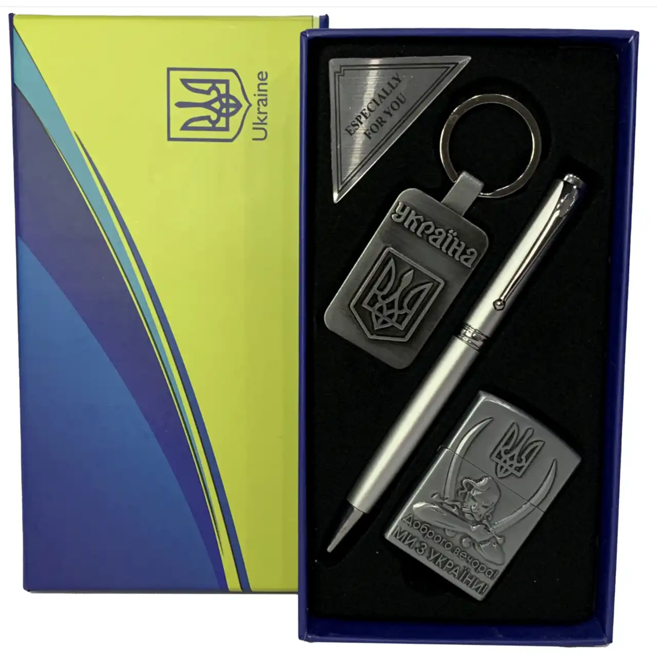 Набір WKL-109 Ukraine поєднує елегантність і національний стиль. Усі елементи виготовлені з якісних матеріалів та оформлені у єдиному кольоровому рішенні з гербом України.