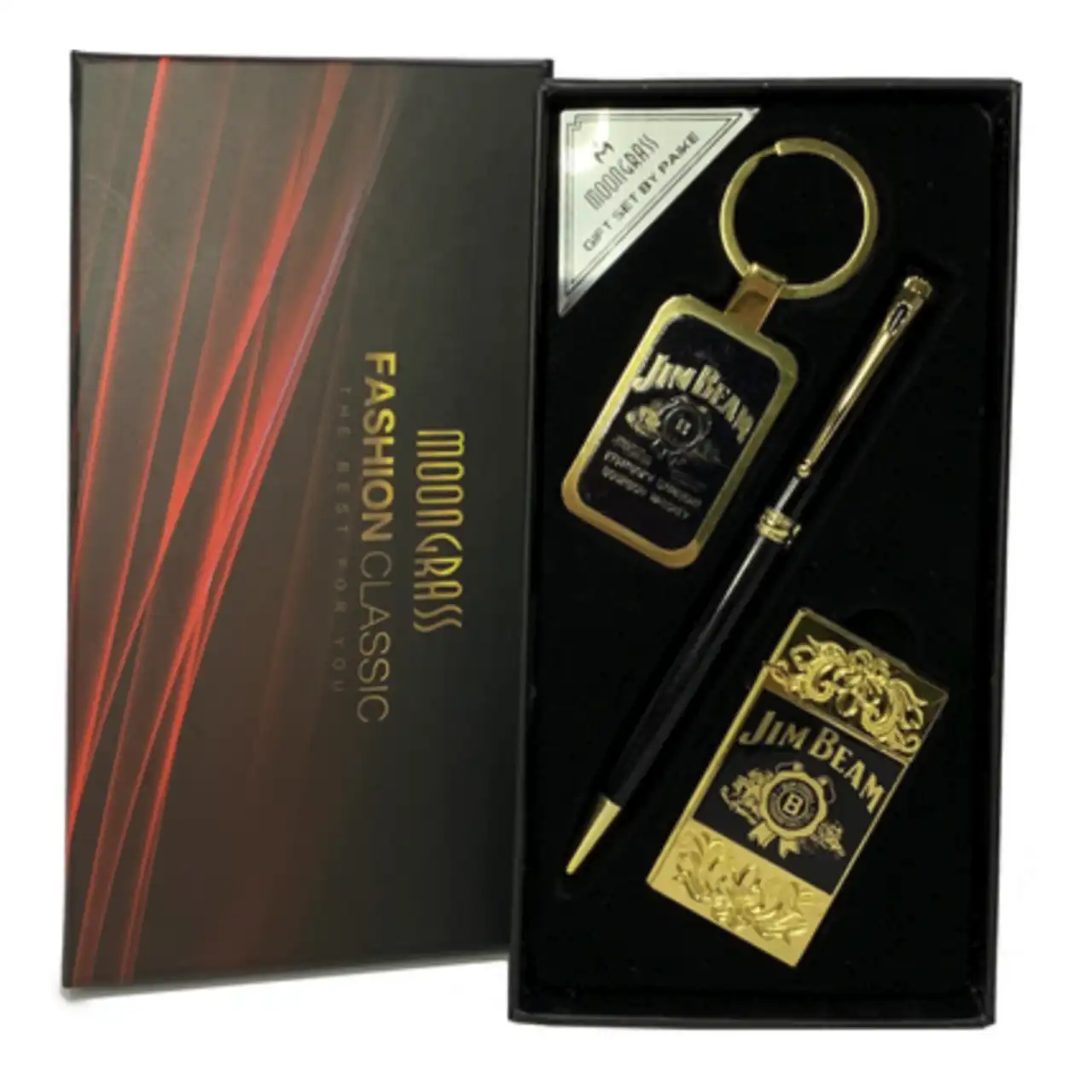 Кожен аксесуар виконаний у золотистому кольорі з гравіюванням Jack Daniel’s та упакований у стильну подарункову коробку — готовий до вручення.