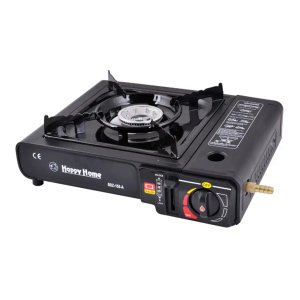 Портативна газова плита Happy Home 66-5 — універсальна плита подвійної дії, що працює як від цангових газових картриджів 220 г, так і від стаціонарних газових балонів (5–50 л) через підключення зі шлангом і редуктором. Компактна, потужна та зручна для дачі, кемпінгу й подорожей.