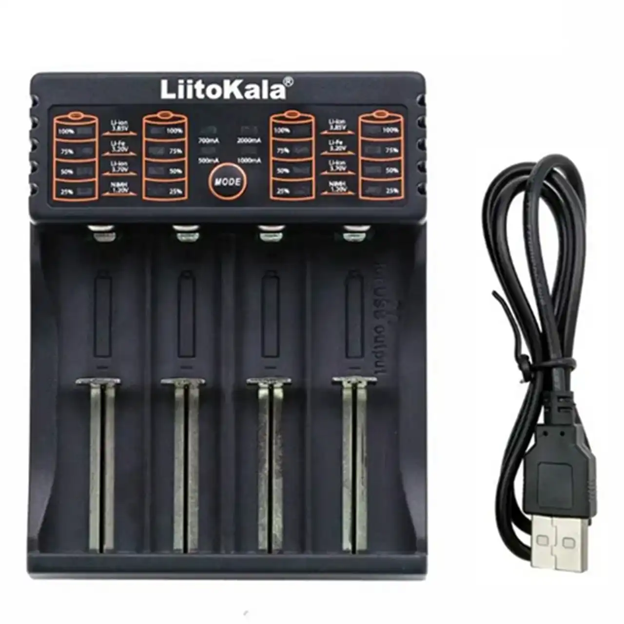 Модель LiitoKala Lii-402 оснащена USB-виходом 5V, що дозволяє використовувати її як Power Bank — достатньо вставити заряджений акумулятор у слот і підключити пристрій для зарядки телефону або іншої електроніки.