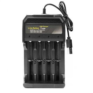 Універсальний автоматичний зарядний пристрій MS-5D84A на 4 канали для зарядки Li-Ion акумуляторів різних типорозмірів — від 10440 до 26650. Оснащений світлодіодною індикацією та багаторівневим захистом.